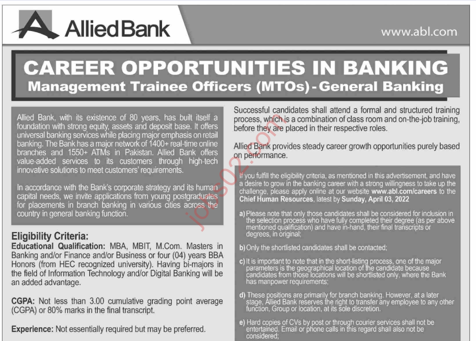 Allied Bank Limited ABL / Bank Jobs