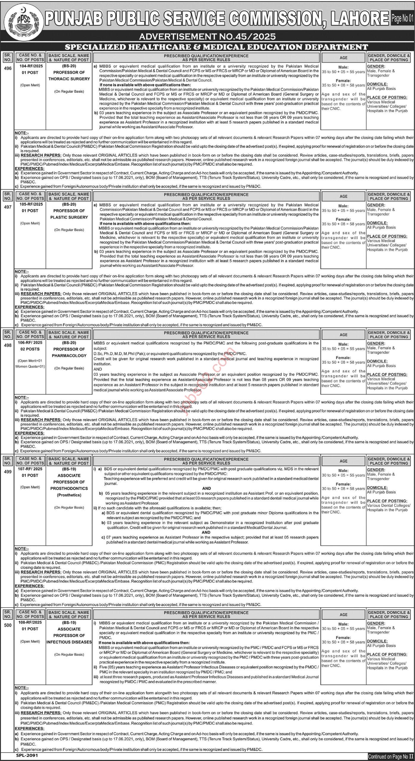 The PPSC has announced multiple posts in different departments, including: